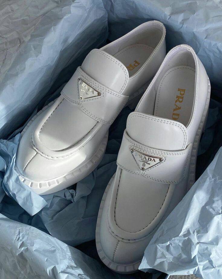 Mokasíny Prada Platform Black z kůže na stylové podrážce