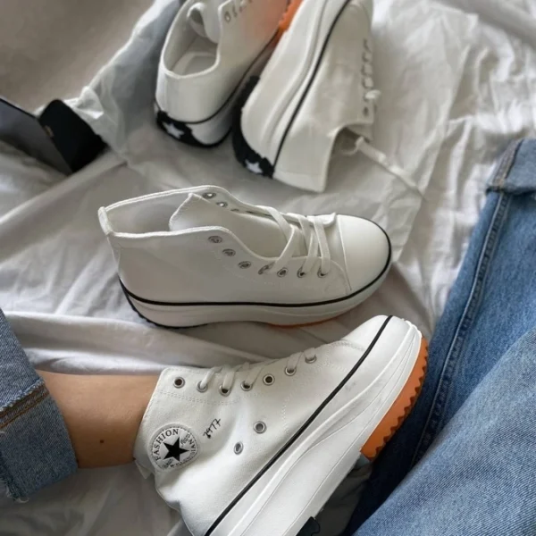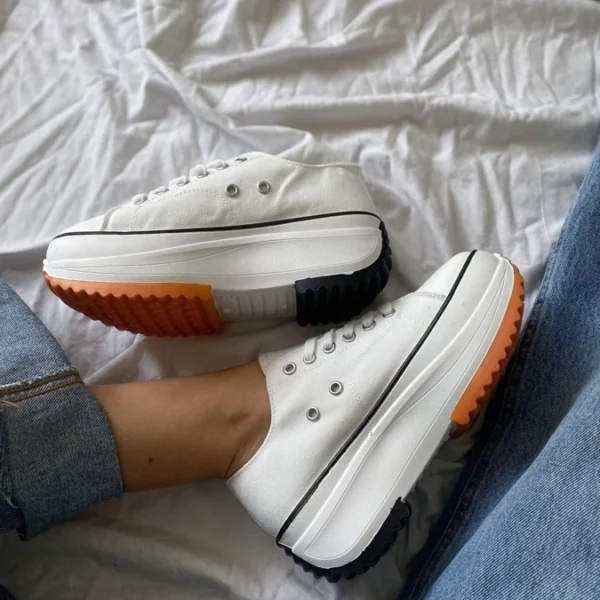 Run low White sneakers – white textile sneakers with eco-leather