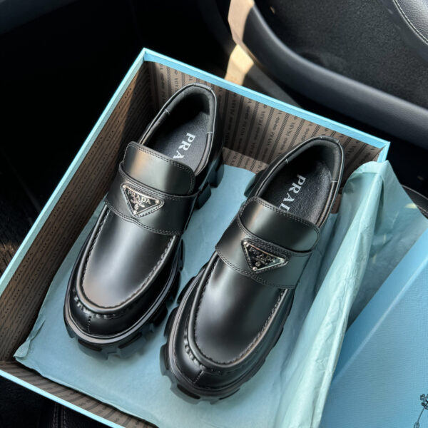 Prada Platform Black nahast loaferid stiilsel tallal
