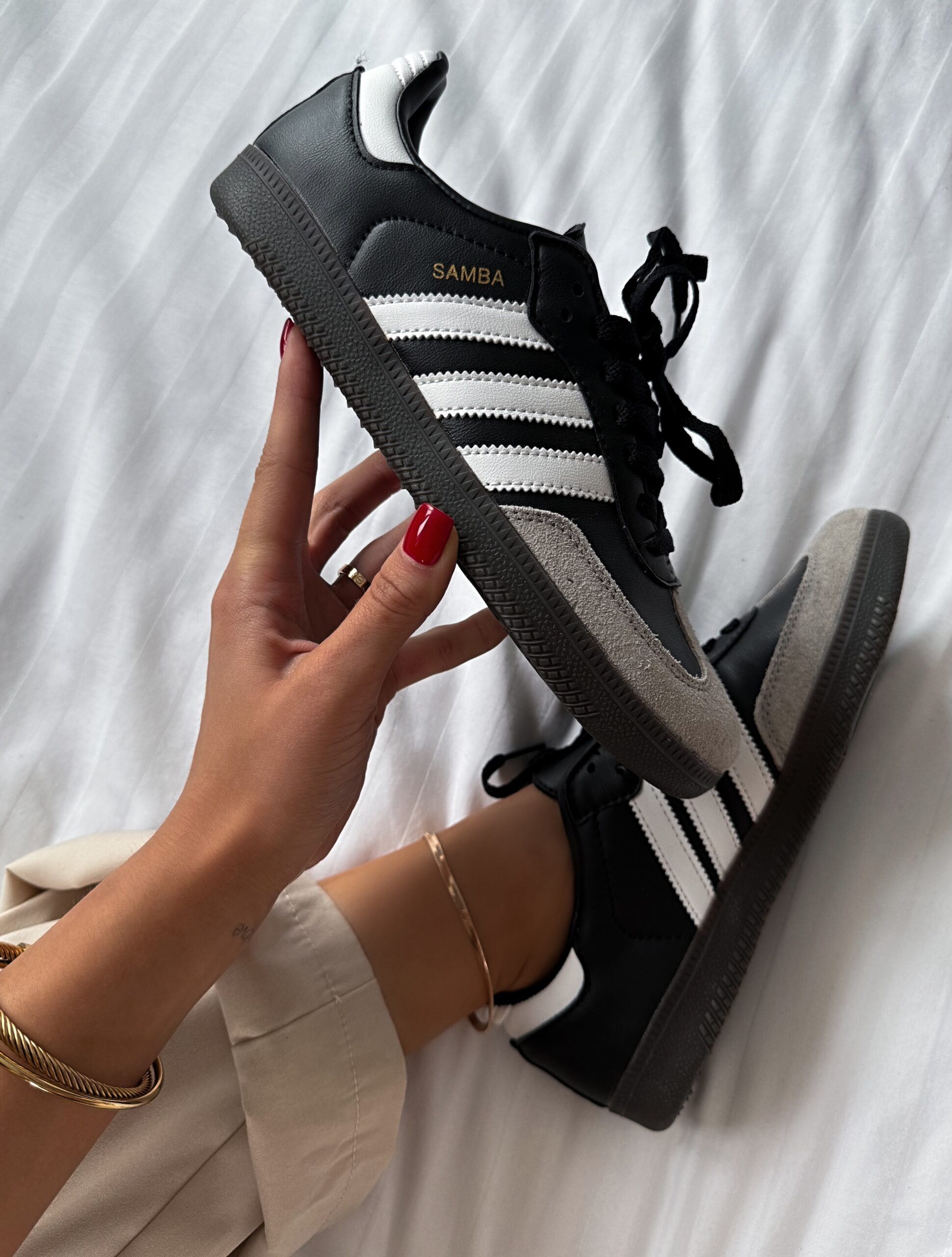 Le sneakers Gazelle Black / Grey sono realizzate in pelle di alta qualità in Vietnam. Leggeri e comodi, sono perfetti per l’uso quotidiano e le attività all’aperto. La combinazione di nero e grigio aggiunge modernità e versatilità al tuo look. Scegli le sneakers Gazelle Black / Grey per un mix di design alla moda, alta qualità e praticità nel tuo guardaroba.