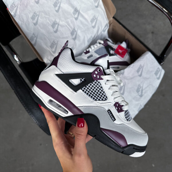 Ādas un kažokādas kedas Air Jordan 4 Retro White Purple