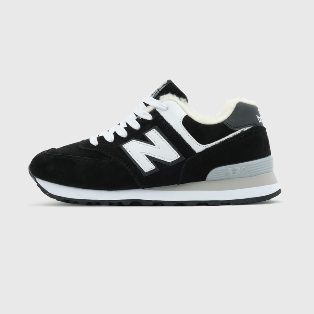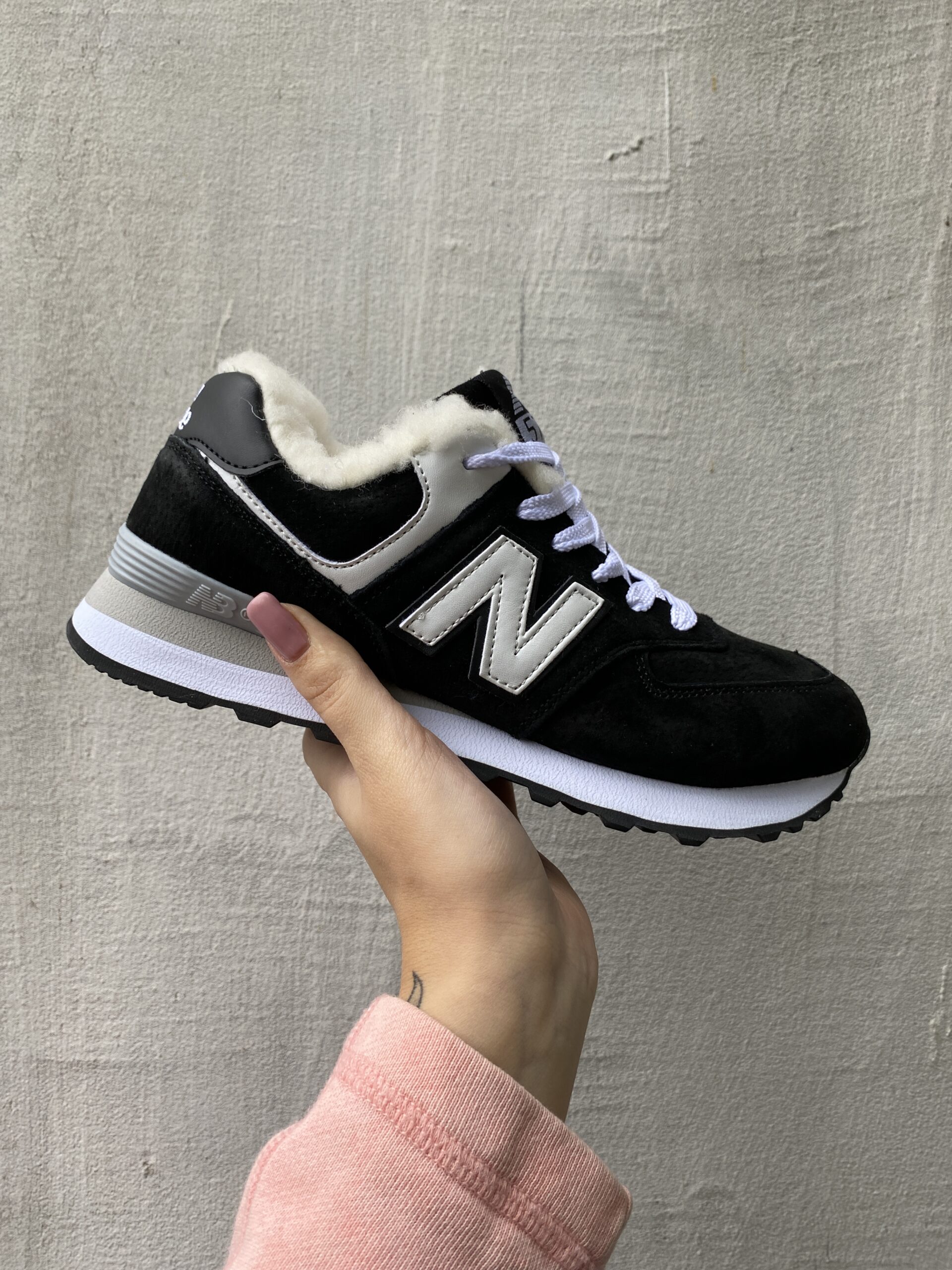 NB 574 Black / White Winter zamšādas un kažokādas čības