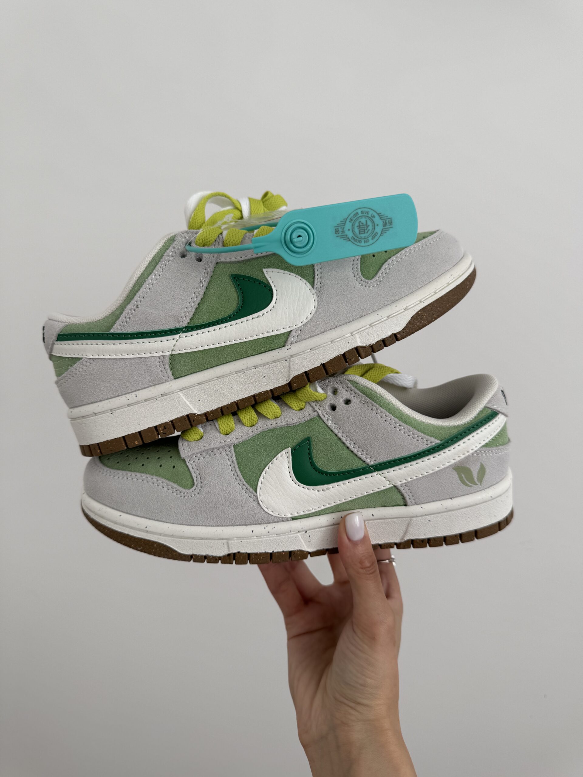 NIKE SB DUNK 85 Double Swoosh Grønne joggesko kombinerer stilig design og førsteklasses materialer-semsket skinn og lær. Ideell for daglig bruk og utendørsaktiviteter, de gir komfort, holdbarhet og et elegant utseende. Laget I Vietnam til høye kvalitetsstandarder, vil disse joggeskoene bli en lys aksent i bildet ditt og et pålitelig valg for fans Av Nike-merket.