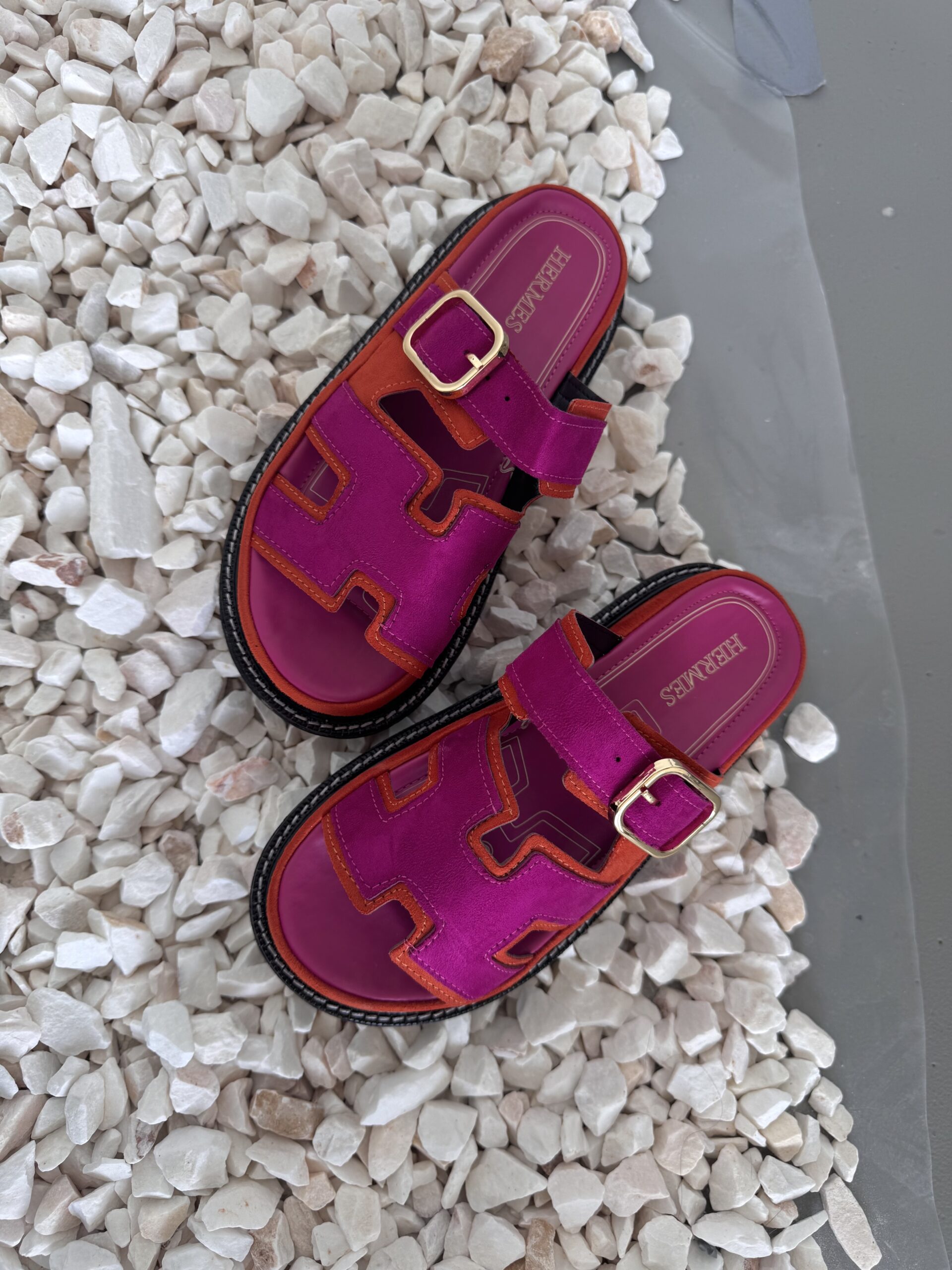 Капці HERMES Platform Slides Fuchsia/Orange шкіра та замша