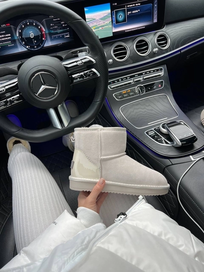 UGG Mini Grey замшеві з хутром та лакованою п’яткою