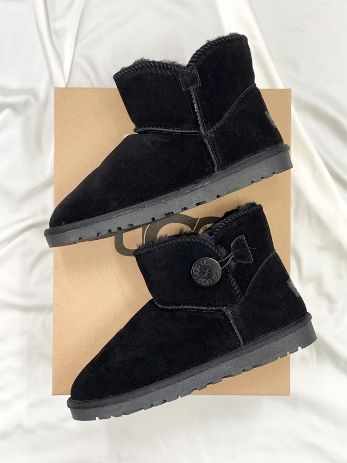 UGG Mini Bailey Button Black — жіночі замшеві уггі з овчини