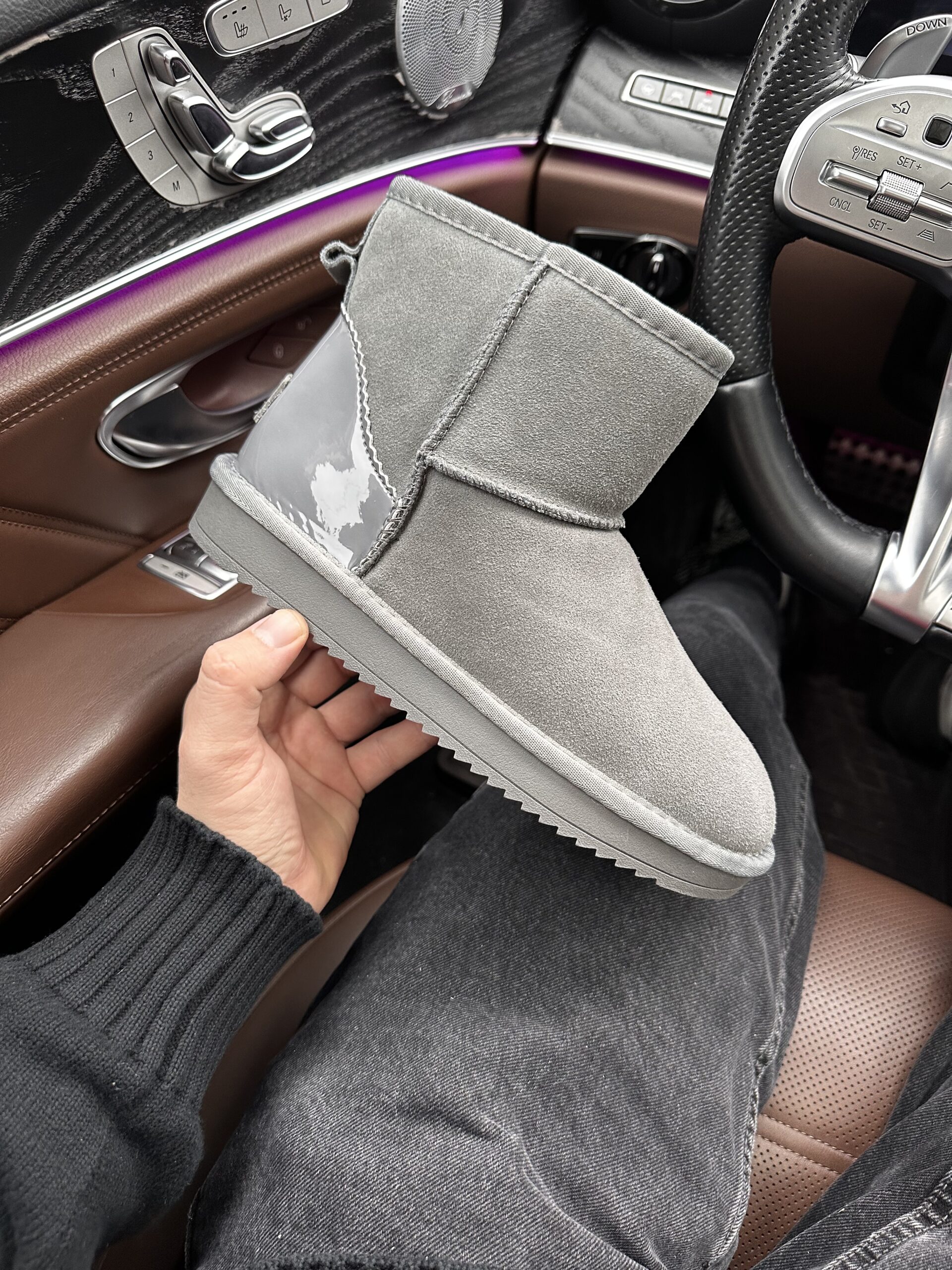 UGG Mini Grey Suede замшеві з хутром та лакованою п’яткою