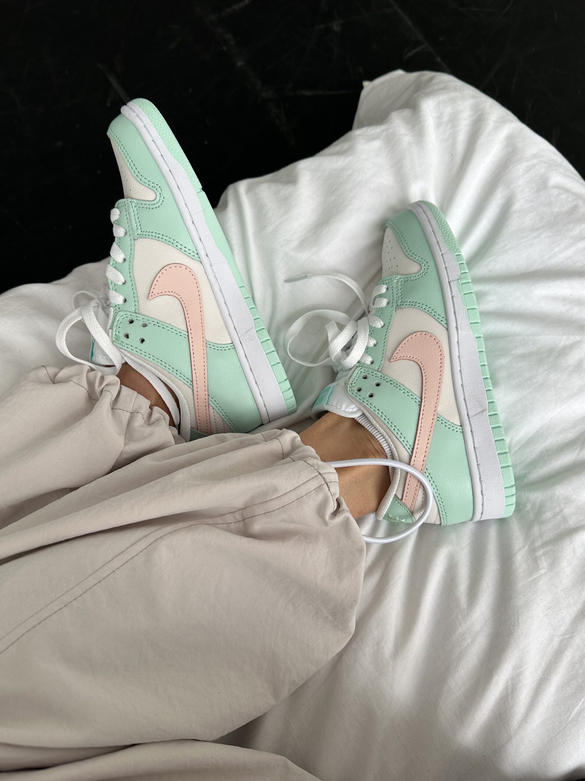 Елегантні кеди NIKE SB DUNK Mint/Pink виготовлені з якісної шкіри, що забезпечує довговічність і комфорт. Ідеально підходять для повсякденного носіння та активного відпочинку, поєднуючи модний дизайн та практичність. Світло-м’ятний та рожевий кольори надають кедам яскравий стильний вигляд, підкреслюючи індивідуальність. Обирайте кеди NIKE SB DUNK, щоб поєднати трендовий зовнішній вигляд і надійність щодня.