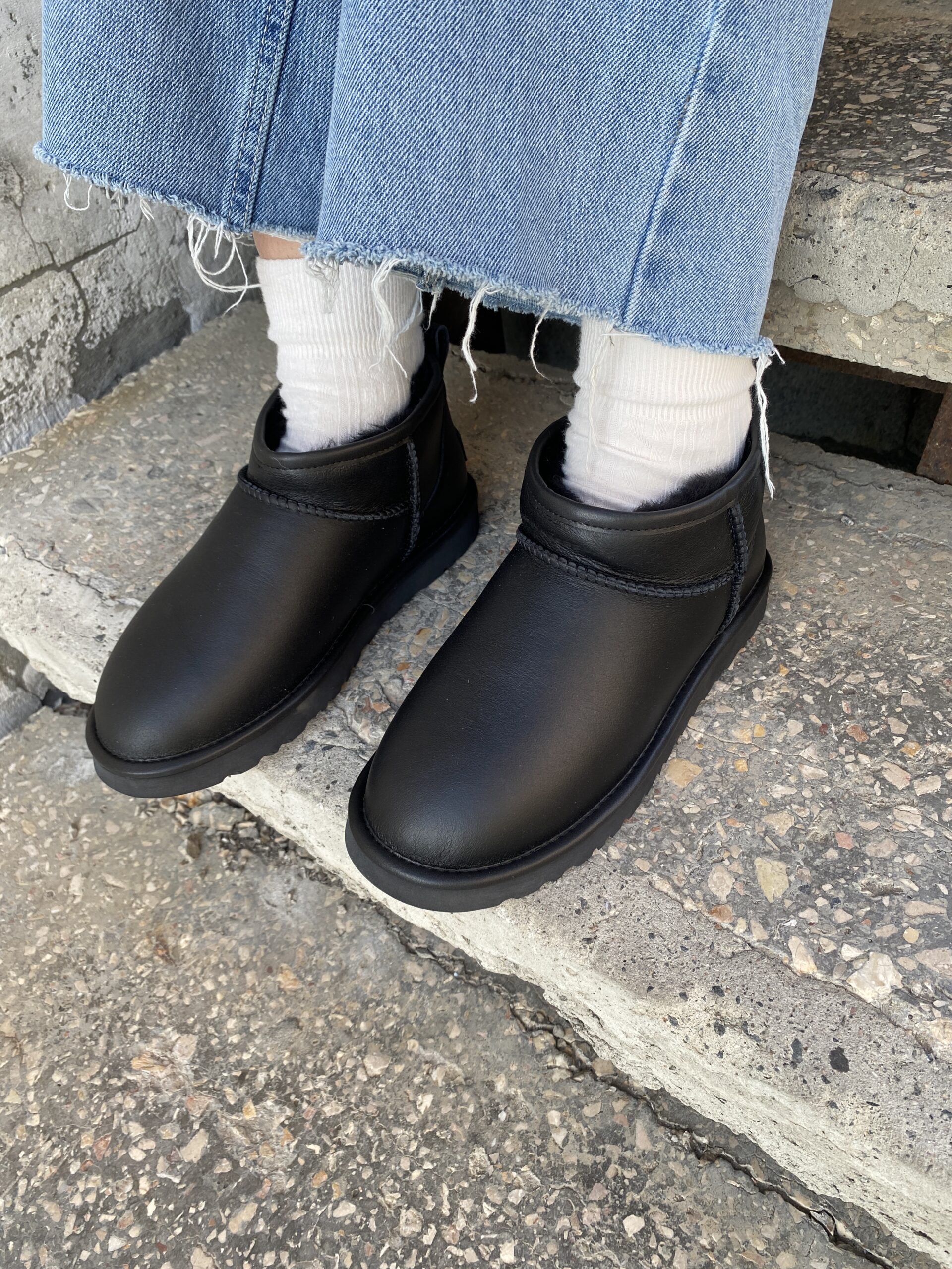 Ugg Classic Ultra Mini Black Leather — шкіряні жіночі уггі з вовною