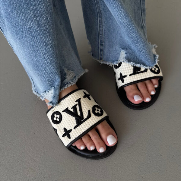 LOUIS VUITTON BLACK / CREAM SLIDES — стильні шкіряні капці