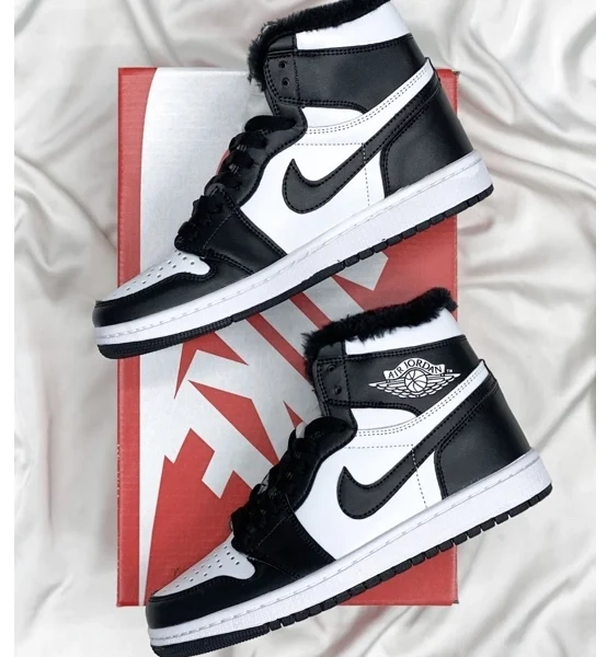 Кеди Air Jordan Retro High Black/White Fur — шкіряні чоловічі кроси