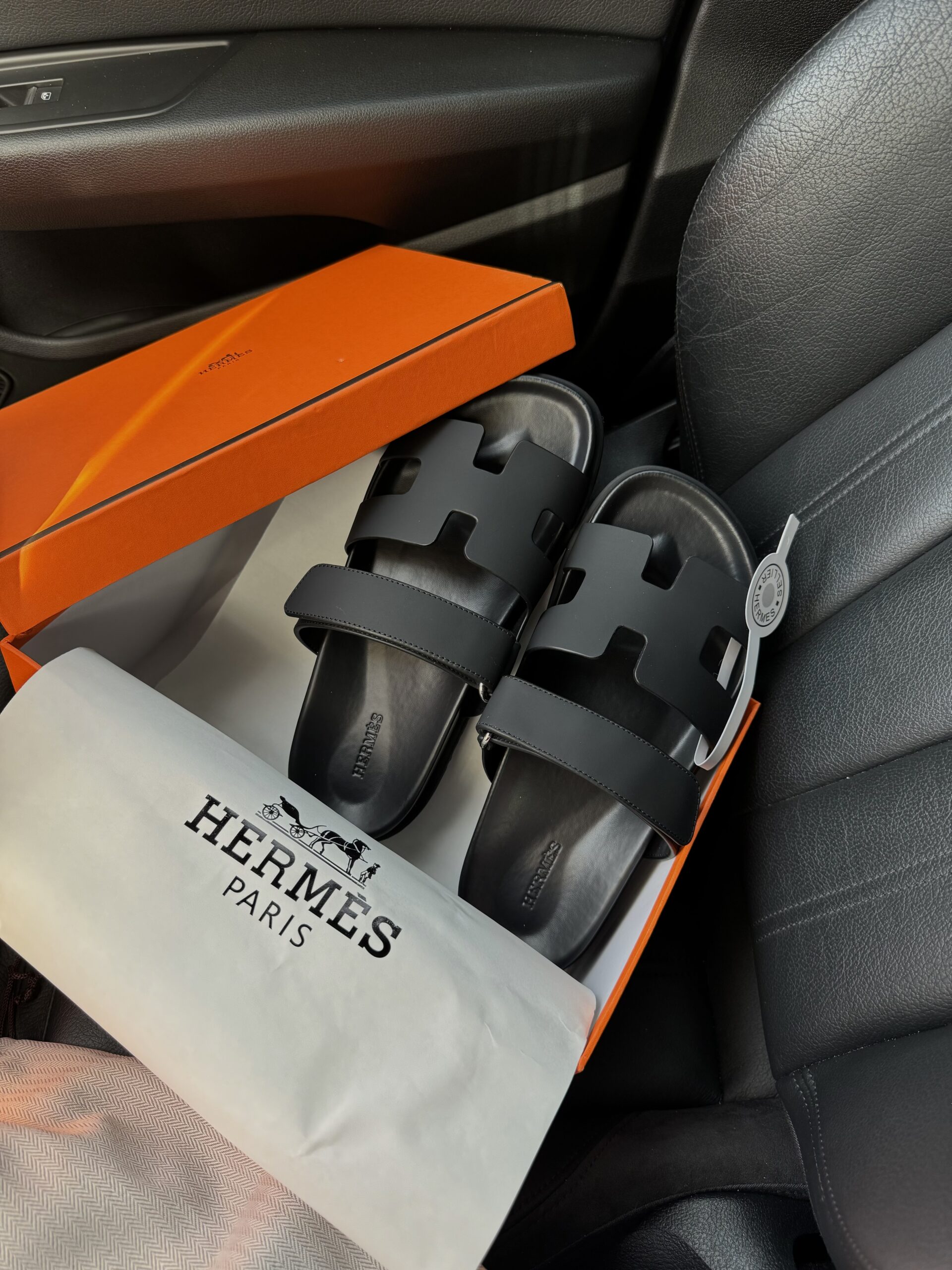 Капці Hermes Slippers Total Black — стильні гумові шльопанці